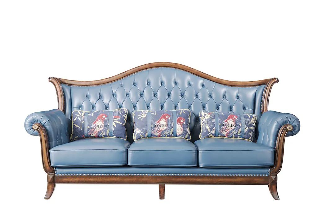 沙发皮质细腻柔软,舒适亲肤,优质弹簧坐包,坐感柔和。虽然它没有夸张的造型也没有繁复的雕花,但是它怀抱式的设计看起来很有张力,同时也体现了美式沙发的包容感。